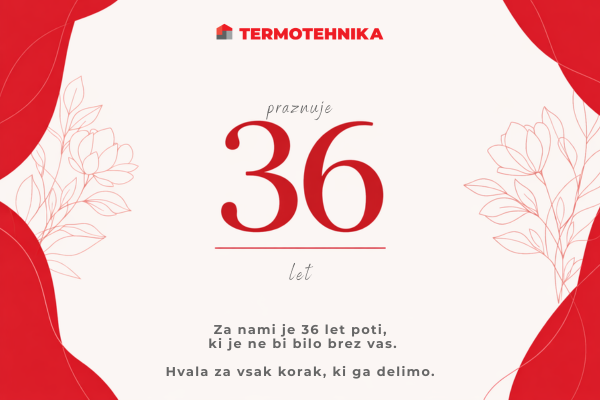 Z velikim ponosom sporočamo, da letos obeležujemo 36. obletnico podjetja Termotehnika d.o.o. Od leta 1990 rastemo skupaj z vami – našimi zvestimi strankami, partnerji in prijatelji.